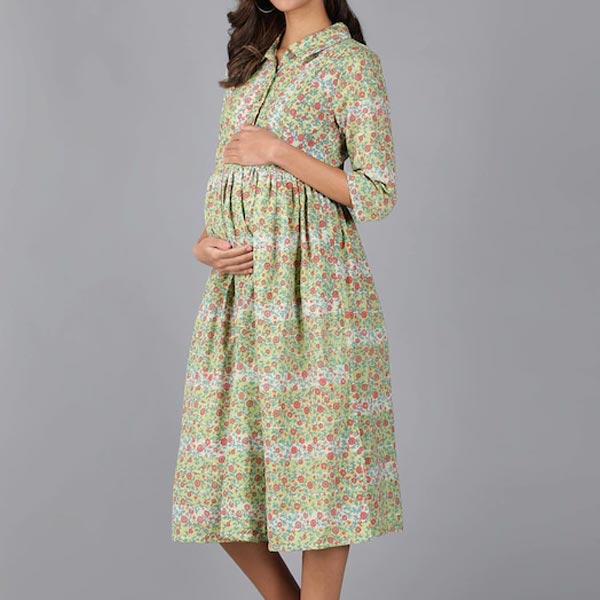 Green Pure Cotton Maternity A-Line Dress