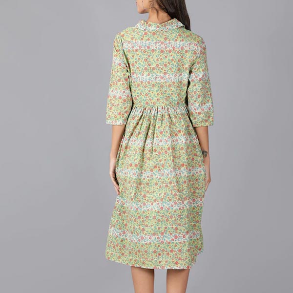 Green floral print a-line dress
