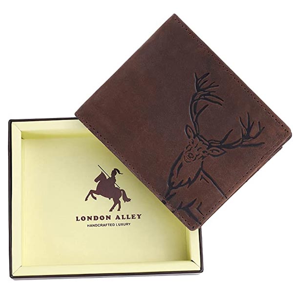 LONDON ALLEY Elk Vintage Brown RFID Blocking Men's Leather Wallet
