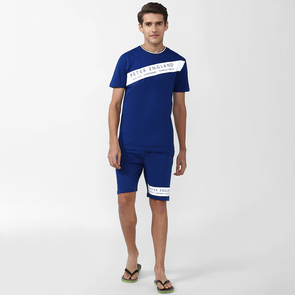 Men Blue & White Printed Cotton Night suit