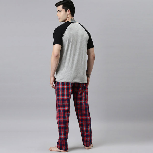 Men Grey & Maroon Cotton Night suit