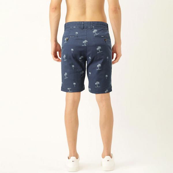 Men Navy Blue & White Print Slim Fit Chino Shorts